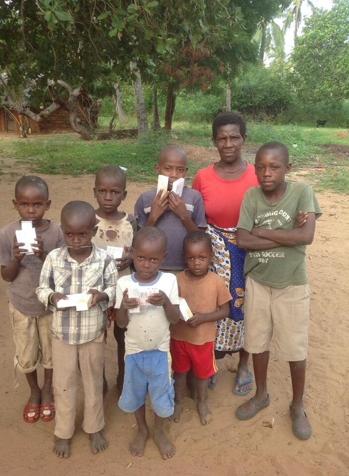 distribuzione di alcune delle medicine per la Tigna,diffusissima tra i bambini, alle mamme in modo che curino i loro figli e insegnino loro come si usano e li controllino regolarmente in modo da essere sicuri che tutto venga fatto come si deve. Kajembe Julius si è preso questo impegno e, come responsabile di Famiglia Sempre Africa Onlus, si occupa di tutto e aiuta i bambini e le loro mamme in modo egregio.